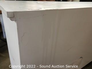 281 Lots including; Husky 2pc Black Steel Locking Tool Chest, West Elm Axel Full Leather Futon, Hisense Household Chest Freezer, Modern Desks, Metal Base Wood Entryway Bench, Entryway Benches, Hand Carved Didgeridoo, Native Copper Jewelry, Vintage Player Piano Rolls, Vtg. Pottery China, Le Creuset & Other cast Iron Enamelware Cookware, Whiskey Crocks, Blue Danube Japan Fine China, Vtg. Records, Asian Collectibles/Decor, Children's Toys, Artwork, Vtg. Glassware, Sports Trading Cards, Air Conditioners, African Juju Hat/Headdress, Various Knick Knacks, Collectibles So Much More!!!
