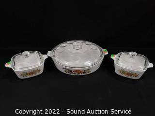 Lot #0202: 3 Corning Vegetable & Mushroom Print Cookware