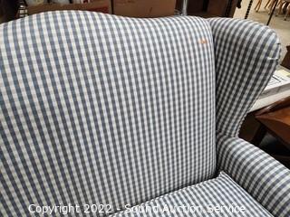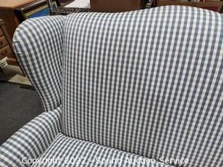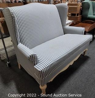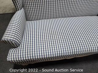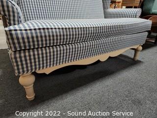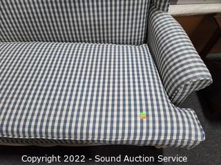 Lot #0014: Broyhill Blue & White Plaid Upholstered Loveseat