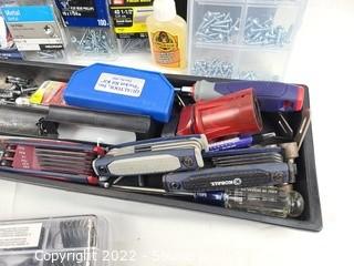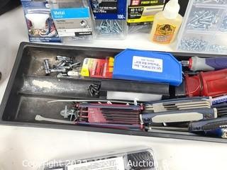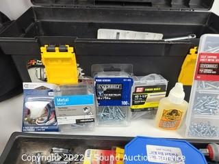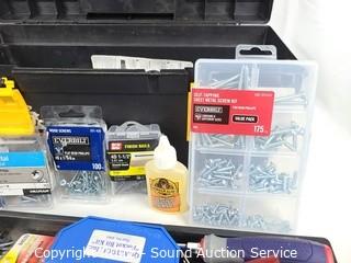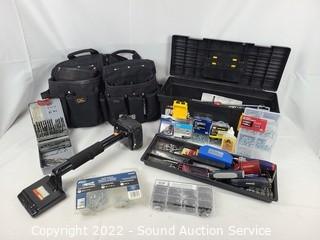 Lot #0318: Carpenters Tool Bag, Toolbox w/Tools & Hardware