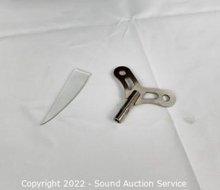 Lot Details: Works, comes with key. Glass panel on left is broken, comes with piece. 25" H x 10" W x 5" D.