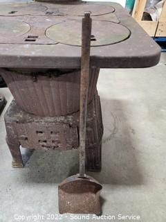 Lot Details: By Montgomery Ward. 4 burner. Comes with shovel. 21" H x 21" W x 23" D. 12" H x 6" stove pipe.