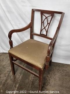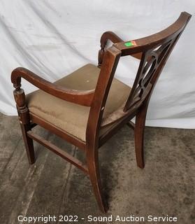Lot Details: 1 chair is a captains. Some wear to the finish. 30" x 52" x 36" with (2) 15" leaves.