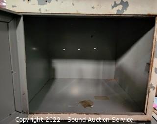 Lot Details: Don't know the combination, door is not closed. Various wear to the finish. 12" H x 13.5" W x 12.5" D.