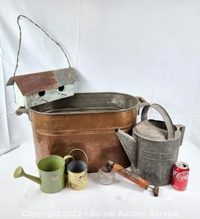 416 Lots including; Vtg. Mahogany Waterfall Furniture, Vtg. No.18 US Army Cannon Heater Wood Stove, Vtg. Oak Roll-Top Desk, Vtg. Free-Westinghouse Sewing Machine w/Cabinet, White Wicker Furniture & Decor, Utility Racks/Carts, Burlap Bags, Vtg. Cookware, Kitchen Items, Cast Iron Cookware, Rustic Farm/Yard Art, Vtg. Oil Lamps, Rubber Ink Stamps, Tools, Vtg. Cameras, Lawn & Garden, Home Improvement, Household Hardware, Shaquille O'Neal Autographed Basketball w/Display, Assorted Footwear, Camping & Outdoor, Intex Giant Floating Mat 9ft 6" x 7ft, Assorted Vintage Military Item/Collectibles, 1990's Sports Cards, Rugs, Assorted Lego's, XBox One w/Games & Much More!!!