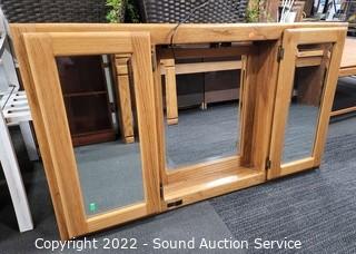 Lot #0069: Lighted Oak in Wall Mirrored Cabinet