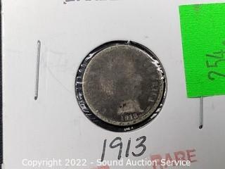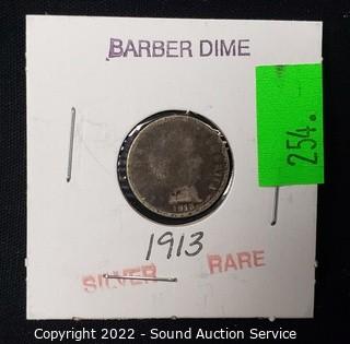 Lot #0254: Rare Barber 1913 90% Silver Barber Dime