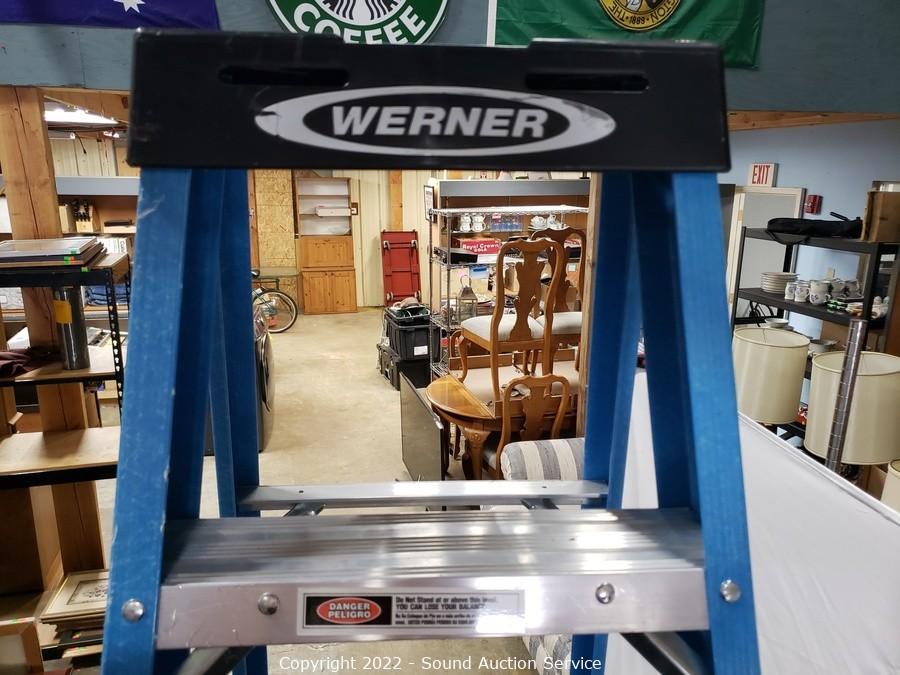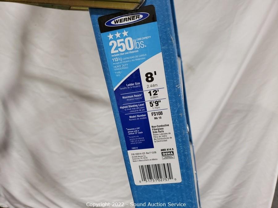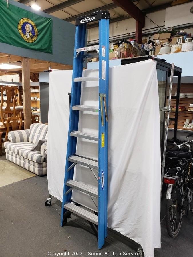 Lot #0262: Werner 8ft Blue Fiberglass Step Ladder