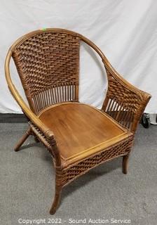 Lot #0213: Wood & Woven Accent Arm Chair
