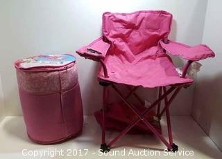 Lot #0139: Hello Kitty Sleeping Bag & Pink Youth Arm Chair