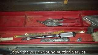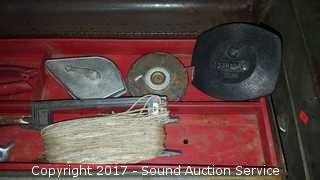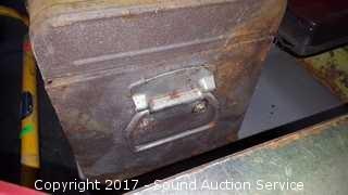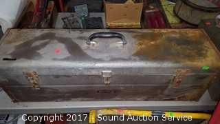 Lot #0107: Rustic Metal Waterloo Toolbox w/Vtg. Tools