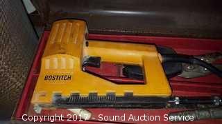 Bostitch electric stapler, steel measuring tapes. Approx. 32" long.