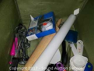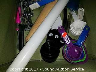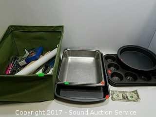 Lot #0208: Tote of Kitchen Utensils & Baking Pans