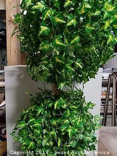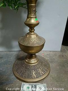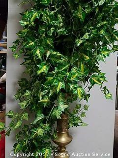 Lot #0201: Unique Brass & Silk Ivy Pillar Decor