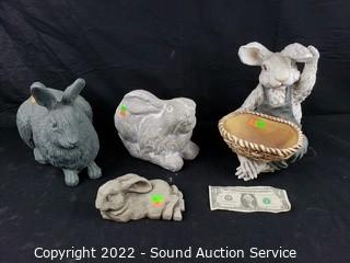 Lot #0244: 2 Concrete & 2 Composite Bunny Statuaries