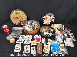 Lot #0111: 2 Tins Full of Vintage Buttons