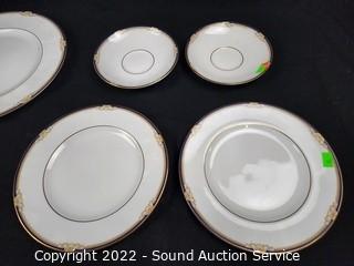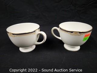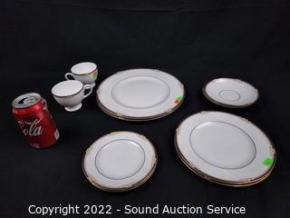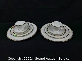 Lot #0045: 2 Wedgwood Blue & Gold Trim 5pc Place Settings