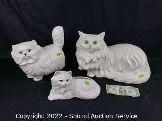 Lot #0223: 3 White Ceramic Cat Sculptures