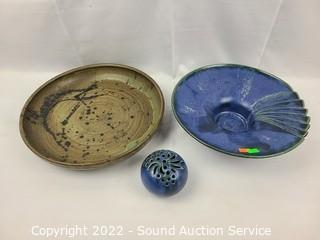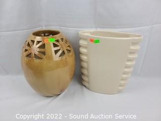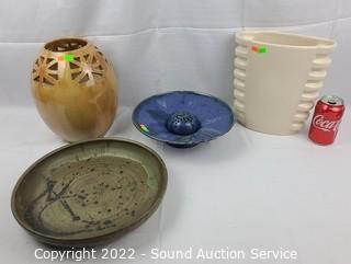 Lot #0214: 4pc Pottery Vases, Flower Centerpiece, Bowl