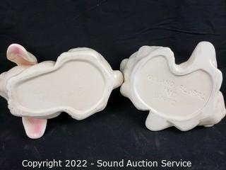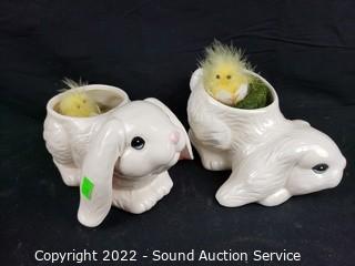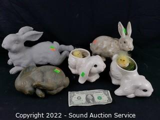Lot #0243: 5pc Ceramic & Composite Bunny Statuaries