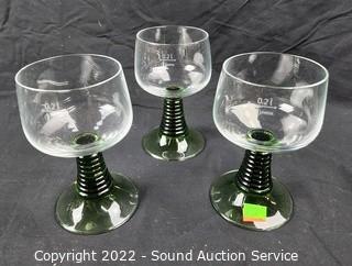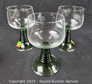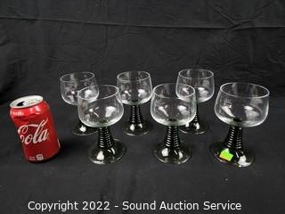 Lot #0312: 6 Zweisel Green Footed Crystal Wine Glasses