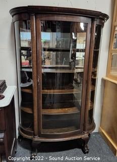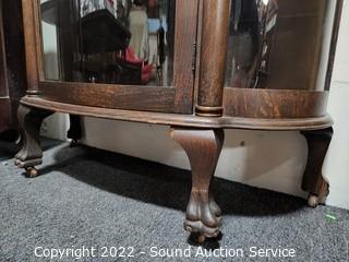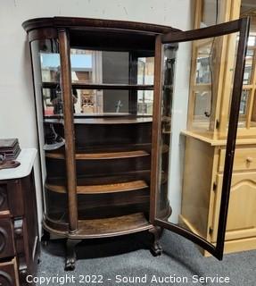 Lot #0008: Antique Oak Bowed Front Curio Cabinet