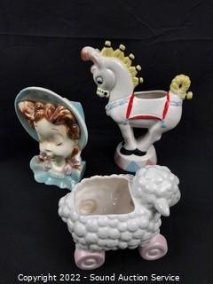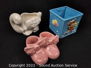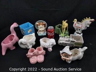 341 Lots including; Red Innovation Steel Frame Futon Sofa, Wrought Iron Matte Black Patio Table & Chair Set, Antique Mahogany & Marble 3-Drawer Vanity Dresser, Antique Oak Bowed Front Curio Cabinet, Nice Maple Hutch, Coleman Side by Side Utility Cabinets, Oak Wash Station Cabinet, Antique Oak Carved Accent Buffet, 18th Century Style Mahogany Sewing Cabinet, Assorted Drinkware Glasses, Fine Porcelain Figures, Fine China Dish Sets , Pottery, Knick Knacks, Figures, 19th Century Gustav Becker Pendulum Wall Clock, Griswold 10" Cast Iron Skillet, Artwork, Assorted Crystal & Clear Glassware, Bisque Hakata Dolls, Utility Shelves, Vtg. Macey White Wash Oak Lawyer's Bookcase, St. Francis Concrete Garden Statue, Lladro Figures & So Much More!!!