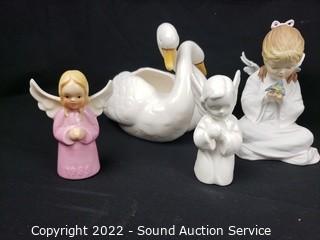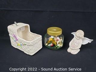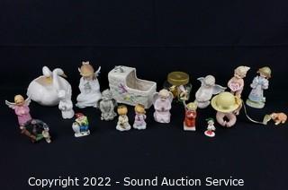 341 Lots including; Red Innovation Steel Frame Futon Sofa, Wrought Iron Matte Black Patio Table & Chair Set, Antique Mahogany & Marble 3-Drawer Vanity Dresser, Antique Oak Bowed Front Curio Cabinet, Nice Maple Hutch, Coleman Side by Side Utility Cabinets, Oak Wash Station Cabinet, Antique Oak Carved Accent Buffet, 18th Century Style Mahogany Sewing Cabinet, Assorted Drinkware Glasses, Fine Porcelain Figures, Fine China Dish Sets , Pottery, Knick Knacks, Figures, 19th Century Gustav Becker Pendulum Wall Clock, Griswold 10" Cast Iron Skillet, Artwork, Assorted Crystal & Clear Glassware, Bisque Hakata Dolls, Utility Shelves, Vtg. Macey White Wash Oak Lawyer's Bookcase, St. Francis Concrete Garden Statue, Lladro Figures & So Much More!!!