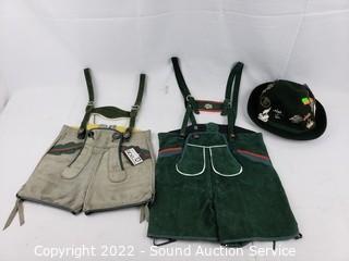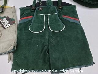Lot #0253: Authentic German Leather Lederhosen & Cap