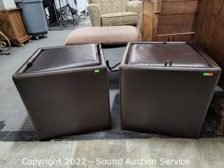 Lot #0015: Brown Vinyl Upholstered Storage Stools/Tables