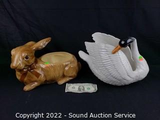 Lot #0220: Ceramic F&F Bunny & Italy Swan Planter Pots