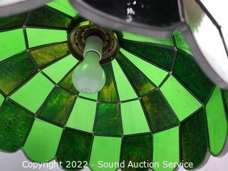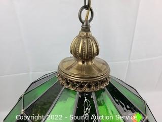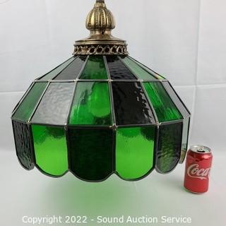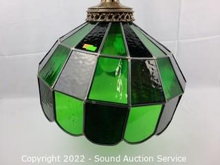 Lot #0203: Vtg. Leaded Glass Shade Hanging Lamp