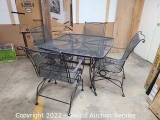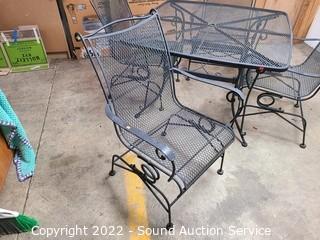 Lot #0001: Wrought Iron Matte Black Patio Table & Chair Set