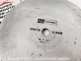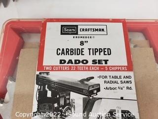 Lot Details: Clock has no movement. Sears Craftsman 7" dado 6263 & & Carbide tipped 8" dado. 8" Jointer-sander.