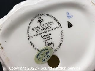 Lot Details: 2004 Figure of the Year, Susan & 2003 Nicole, 8-1/4" to 8-3/4" tall. Hand made & decorated, made in England.