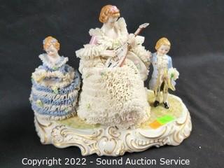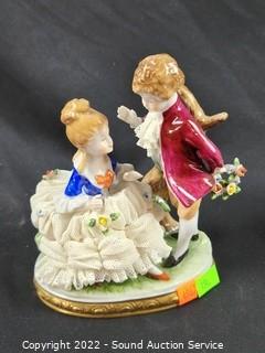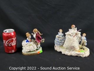 Lot #0154: 2 Vtg. Fine Porcelain Lace Dresden Style Figures