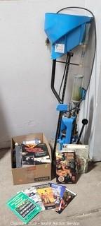 Lot Details: Reloader with case feeder, hopper, various reloading literature, and accessories.
