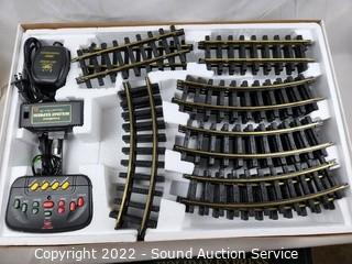 Lot Details: 4pc Train Set, 16 pieces of track, multi-function controller, 120V transformer. Has power, appears complete, in excellent condition.