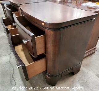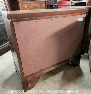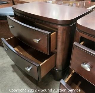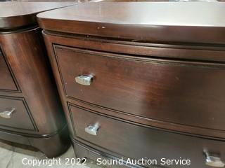 Lot Details: Matches the previous lot. One has some minor scratching on the top, otherwise great condition. Appears to be solid wood construction. 26" H x 28" W x 16.5" D. Drawers all work well.