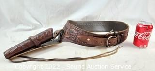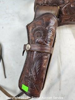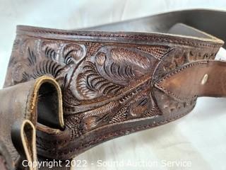 Lot #0223:     Western Tooled Leather Pistol Holster w/Belt