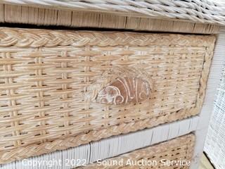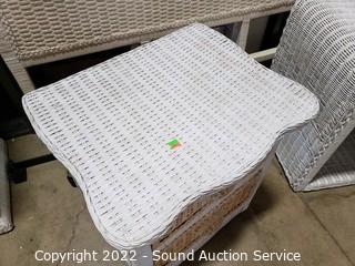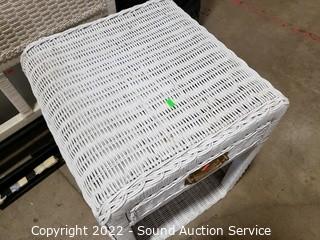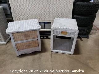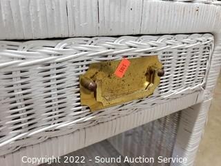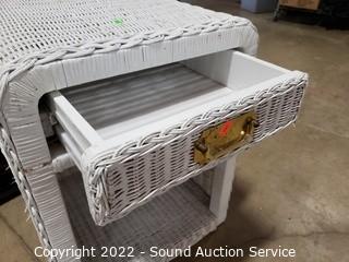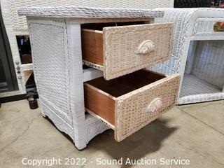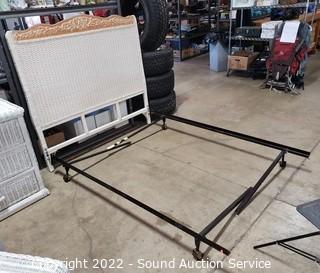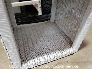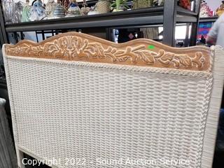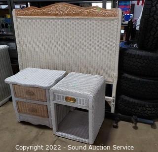 Lot #0031: White Wicker Full Bed Frame w/2 Nightstands
