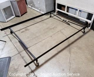 Lot Details: 51"H x 54" W headboard w/steel rails. 22" H x 22" W x 18" D nightstands. Light wear to the paint finish, overall good condition. Just one clip for frame, other was taped.