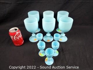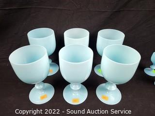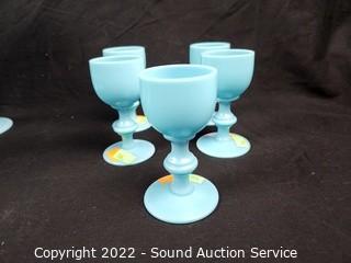 Lot #0166: 11pc Turquoise Wine Glasses & Cordials