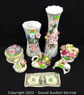 Lot #0115: 7pc Fine Porcelain Floral Decor