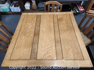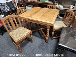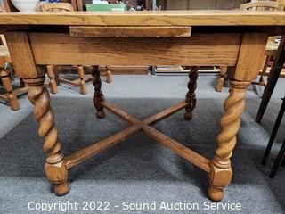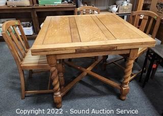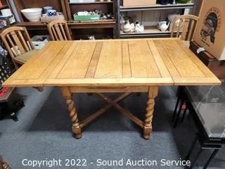 Lot #0030: Antique Oak Barley Twist Leg Dining Table w/Chairs