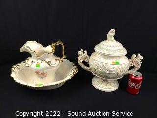 Lot #0145: Antique/Vintage Pitcher & Basin, Covered Pot