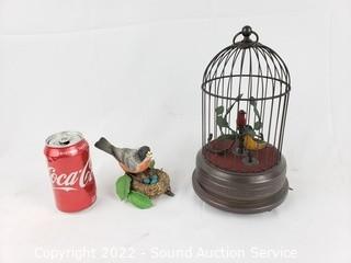 Lot #0077: Lenox Porcelain Bird & Bird in Cage Music Box