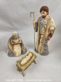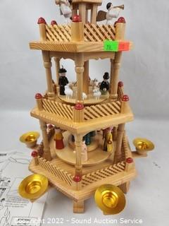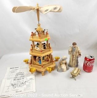 Lot #0156: Wood Nativity Candle Carousel & 3pc Nativity Set