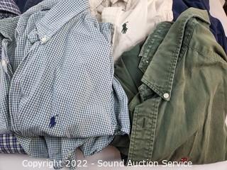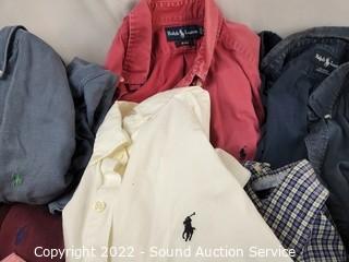 Lot Details: All have been worn, used. Many appear to be Ralph Lauren Polo.