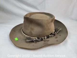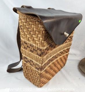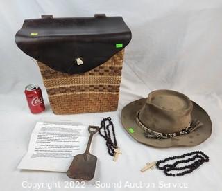 Lot #0193: Handcrafted Woven Leather Backpack & Stetson Hat